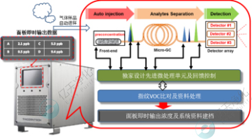 ESKY-VOCs主要由傳感器陳列模塊、多路采樣器、控制柜以及在線軟件監控系統4個部分組成。設備通過多路采樣器配套的大泵完成遠距離抽樣,之后再通過微型小泵進行傳感器精準送樣,實現精準采樣量以及過濾控制;利用專利高效能微氣相色譜諧技術(GC),可實現定制化VOC分離效能。 采用復合傳感器組合,實現做低VOC檢測限(<ppb);部署帶有RAID1磁盤陣列保護服務器,實現豐富的圖表數據展示。