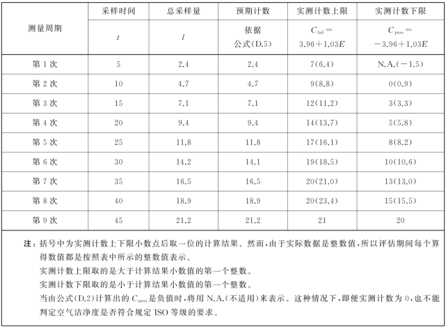 表E.1給出了所允許的非整數潔凈度等級。粒子測量上存在的不確定性使得級別增加不宜低于0.5,表中的腳注說明了由于采樣和粒子采集的局限性而帶來的限制條件。