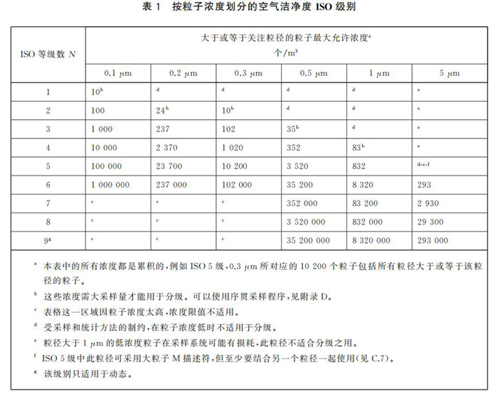 ISO 14644-1:2015“潔凈室及相關受控環(huán)境 第1部分:按粒子濃度劃分空氣潔凈度等級”中將空氣潔凈度劃分為以下幾個等級: