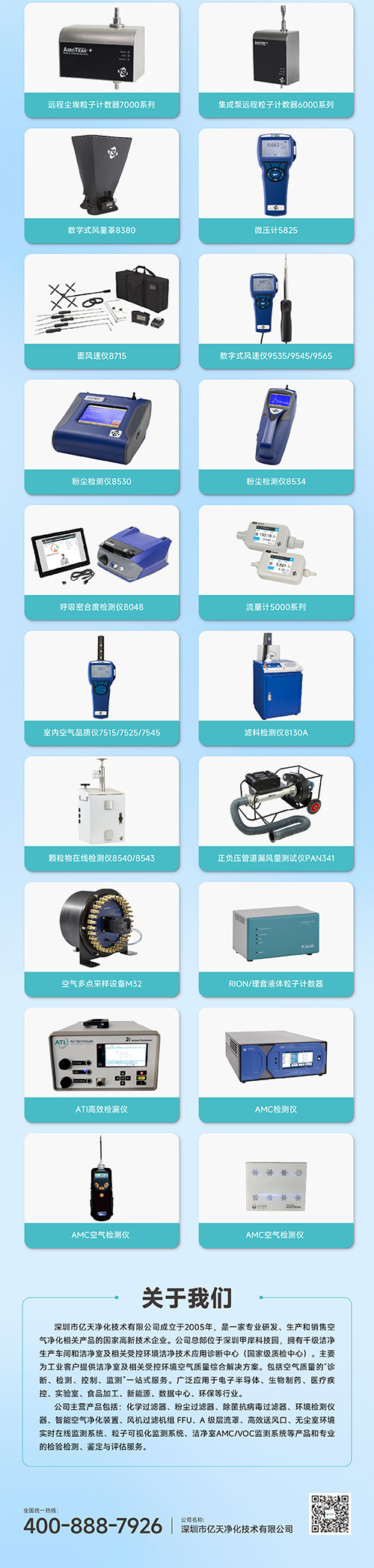 億天凈化一直致力于受控空氣環(huán)境品質的發(fā)展,是一家專業(yè)研發(fā)、生產(chǎn)和銷售空氣凈化相關產(chǎn)品的國家高新技術企業(yè)。擁有各類高端環(huán)境檢測儀器,行業(yè)領先、口碑護航,能實現(xiàn)對各種潔凈等級的工作臺、實驗室、潔凈車間的凈化效果、潔凈級別進行監(jiān)控與檢測,以保證產(chǎn)品的質量。